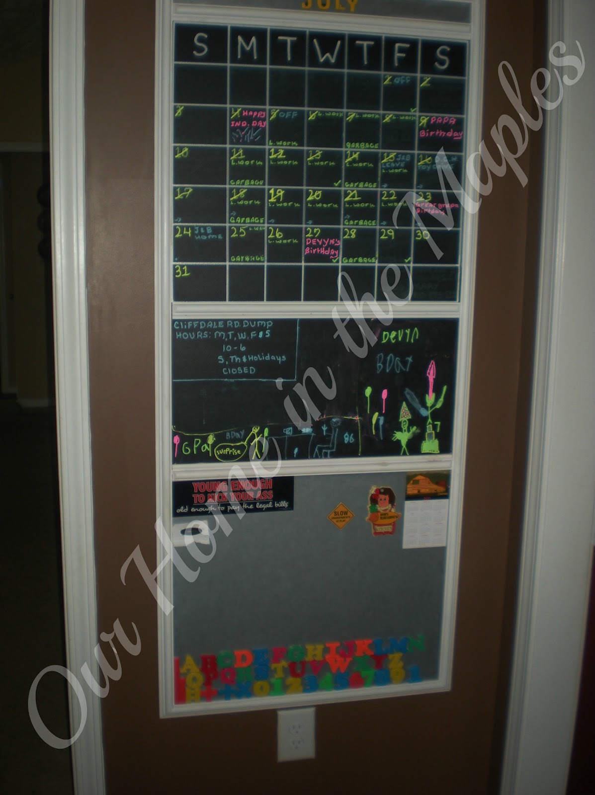 These are busy times and I know many of us find it hard to keep up with the comings and goings of everyday life. We have papers, calendars, etc, on our refrigerators or on a desk, or we have a cork board on the wall that is over flowing, or sometimes just thrown in a draw. Well, here is a solution, a D.I.Y project that really doesn't cost that much and you can make it fit your needs.